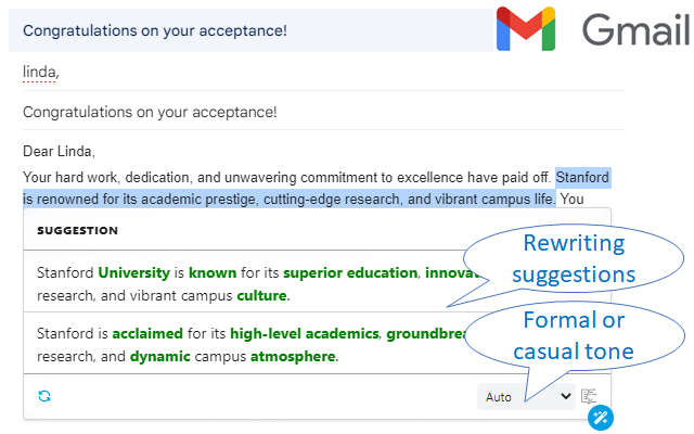 Writing Assistant browser extension allows you use Writing Assistant directly in the editors in most websites, including GMail and WordPress, without leaving the editors.